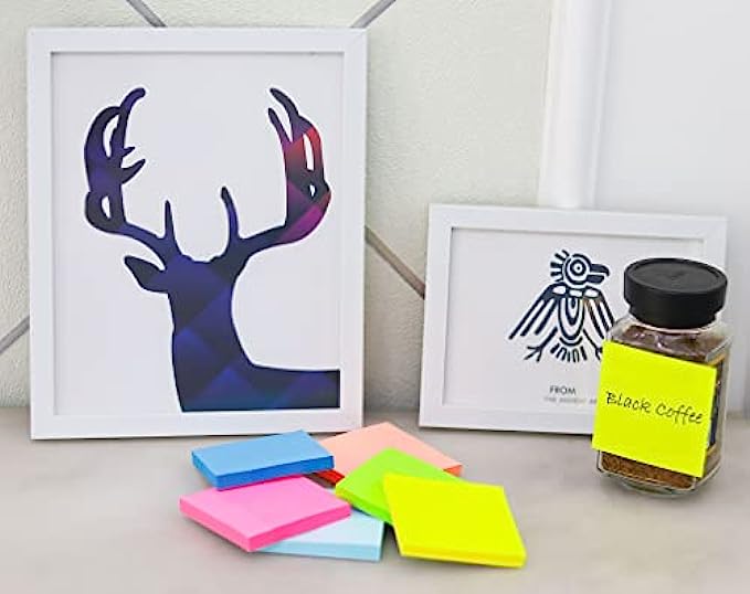 ✅Super Sticky Notes: Strong adhesive, make sure sticky notes don't fall off, and removes cleanly as well. Sticky note is easy to recycle.