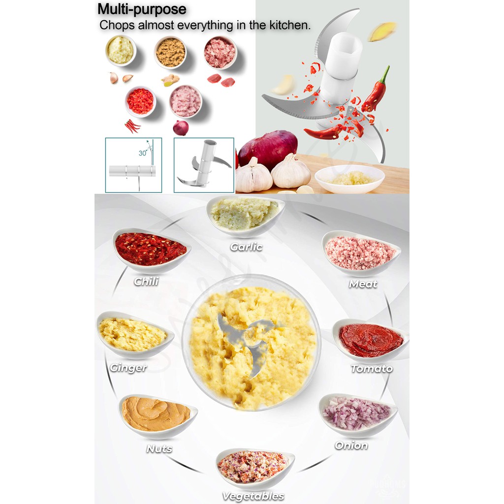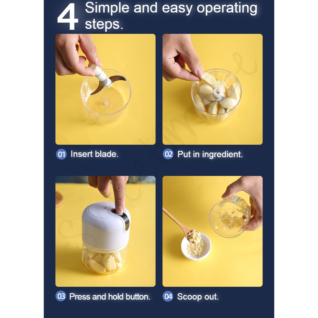 [SG Stock] 4 IN 1 Portable Electric Slicer /Masher /Garlic Chopper With Peel Function