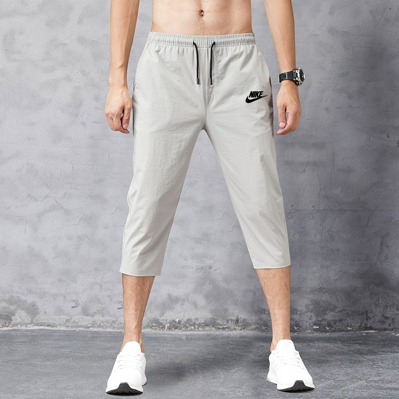 ! ️HOTSELLING! ️new solid color cropped trousers Capris men's casual pants with ice-like pants shorts