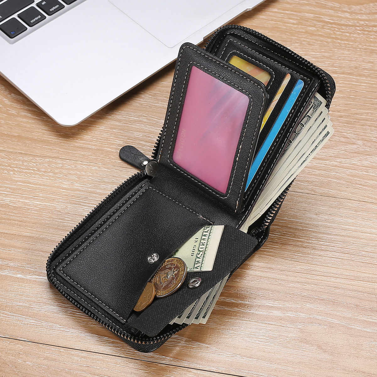 1 Piece Men's Business Zipper Short Wallet Youth Fashion Stitching Multifunctional Wallet Coin Pocket Coin Purse Boys Gifts