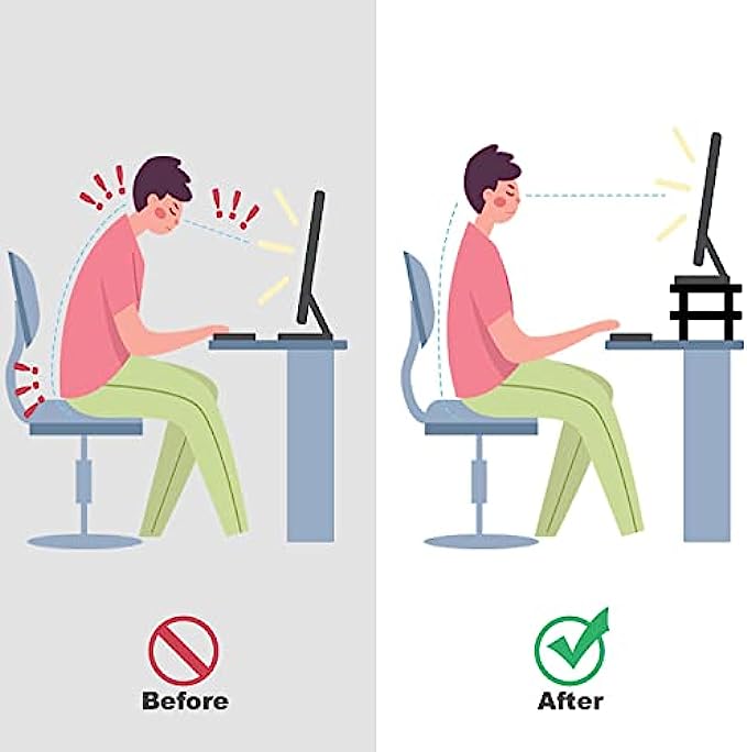 • ☝PERFECT EYE LEVEL - A sturdy desk monitor riser lifts your computer screen to perfect eye level at work in home office and really reduce a lot of neck strain for you being at the computer all day. The legs are easy to take off or put on to adjust height of the desktop monitor stand.