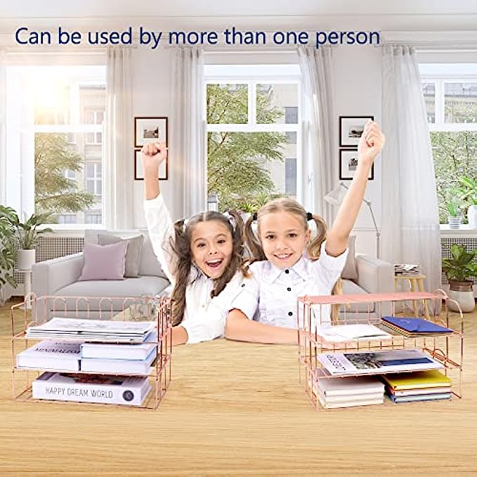 • 【6 Stackable Trays】-This rose gold desk organizer includes 6 file trays and one upper display shelf. Use this desk file organizer as individual trays or stack them to save more space. You can use them for one person or separate them for multiple people.