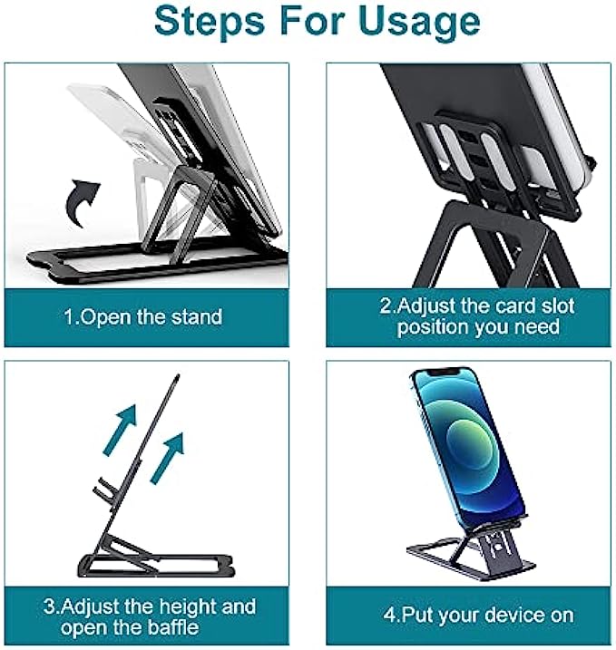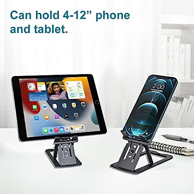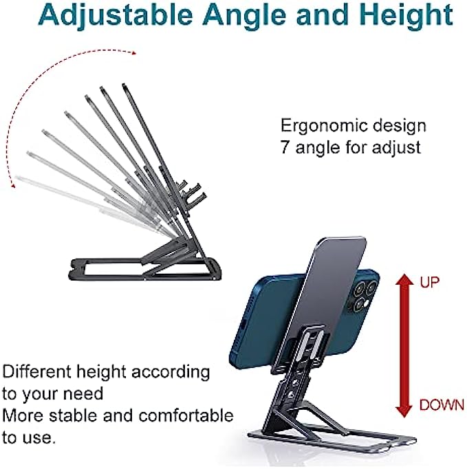 • ?[Height and Angle Adjustable] The adjustable phone stand is ergonomically designed. Ten heights and seven angles are easily adjustable, giving you the flexibility to customize the angle to find the most comfortable viewing angle. Reducing the frequency of looking down at your phone screen can help stabilize your posture and reduce stress on your neck and back.