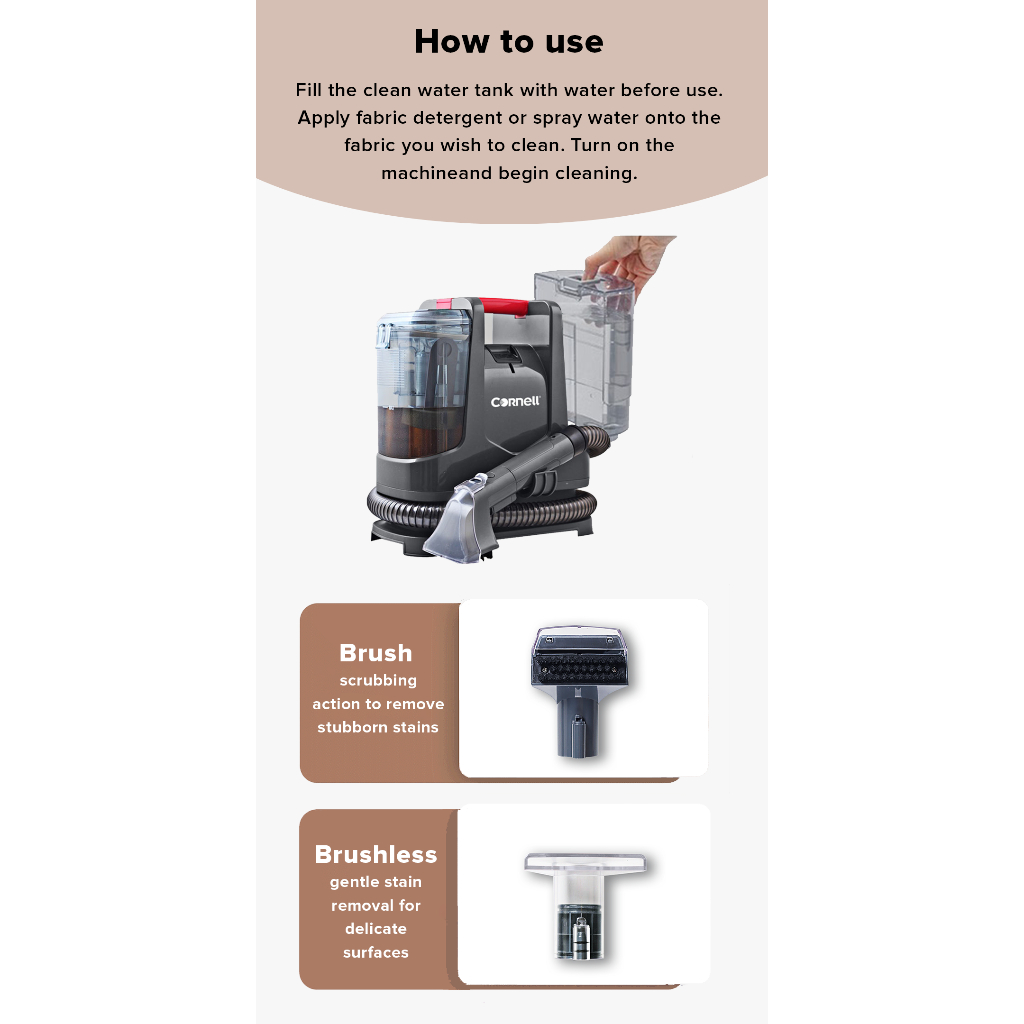Cornell Spot and Stain Fabric Cleaner CFCE400VC Sofa, Mattress, Upholstery and Carpet Cleaner