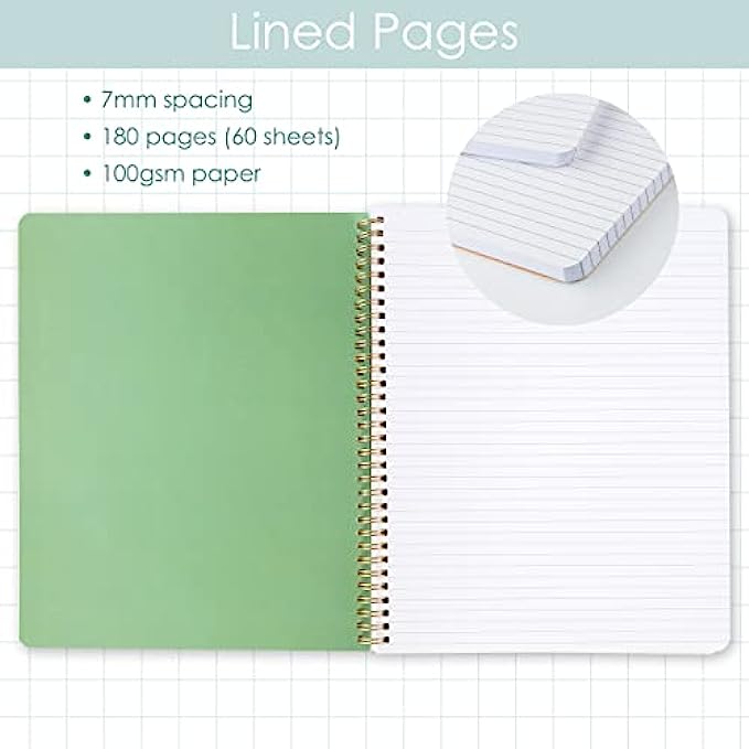 • 160 Pages - Our spiral bound notebooks has 160 college ruled pages (80 sheets).