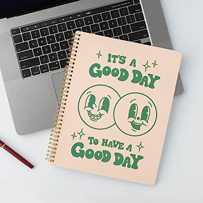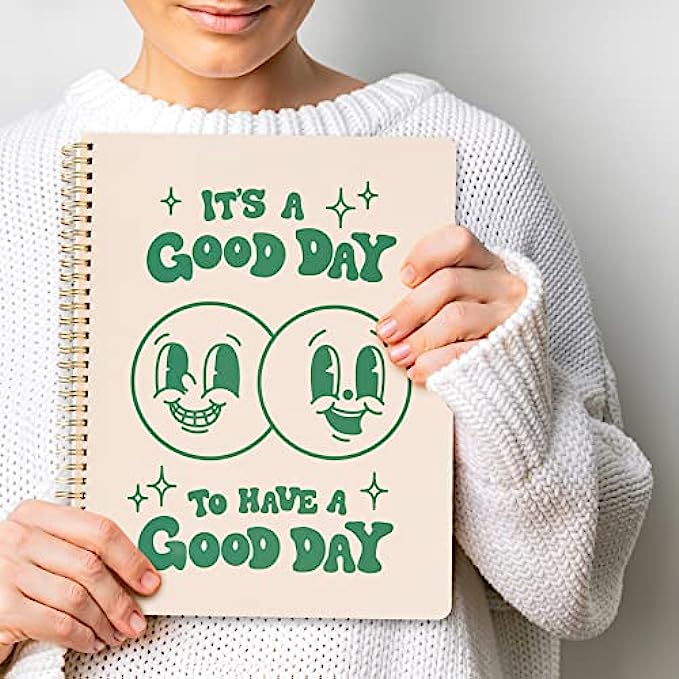 • Retro cover art - Write in style with our trendy cover art featuring a retro style happy face and an inspirational quote to start your day off with a positive vibe