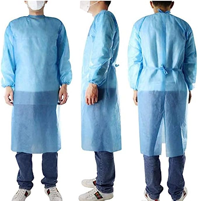 Leo Disposal Protective Isolation Gown - 10pcs Blue. Latex Free,Non-Woven, Fluid Resistant,ONE Size FITS MOST (10 Pcs)