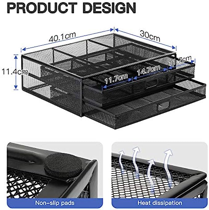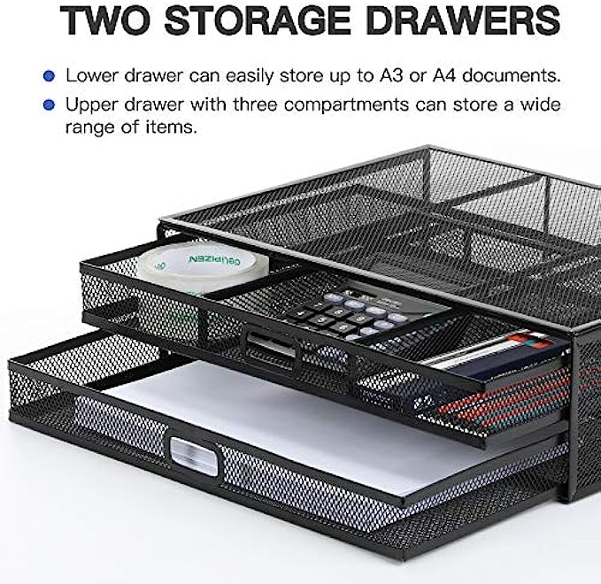 • 【Super Desk Organizer with 2 Drawers】- Store almost all of your small office supplies like pens, notebooks, smart phones, paper, documents etc., keeping your desk neat and tidy. A superb way to save space and decrease clutter