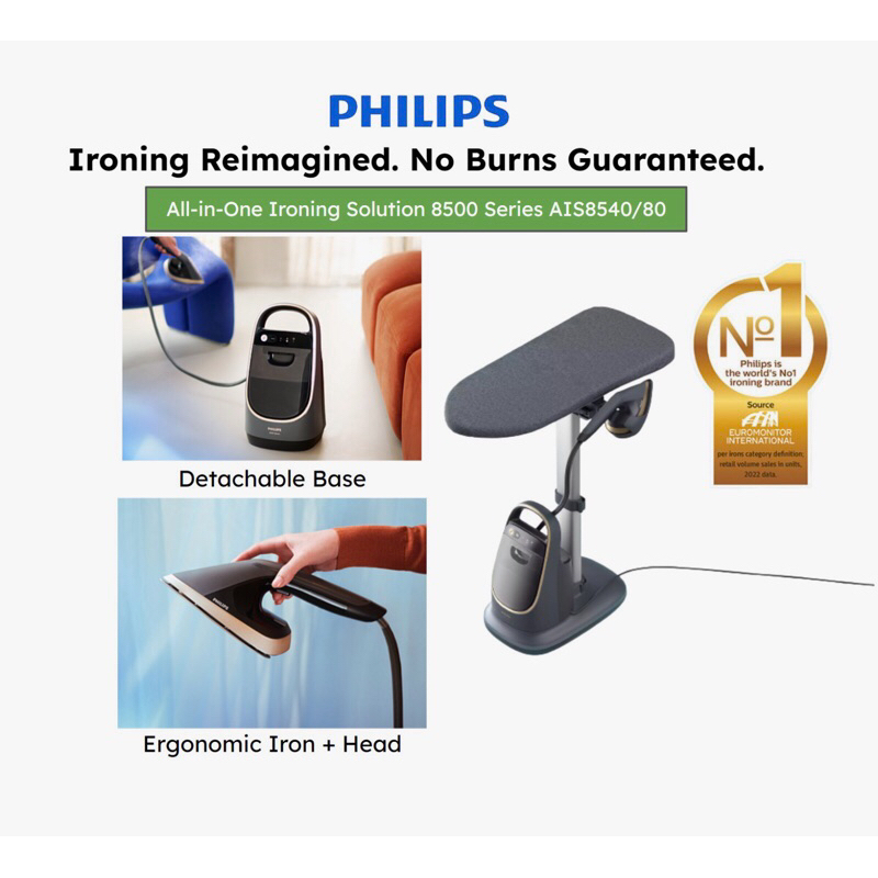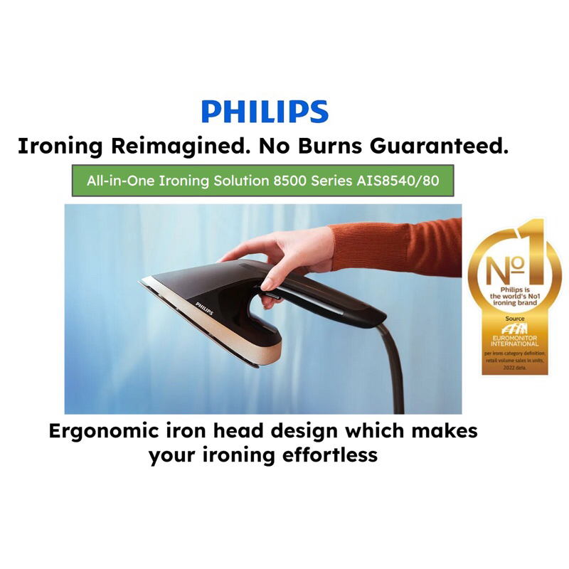 PHILIPS PREMIUM All-in-One Ironing Solution 8500 Series Stand Steamer AIS8540/80, 2200W, No Burns Guaranteed, Iron Head
