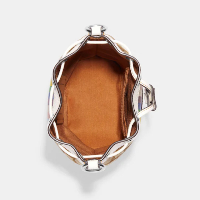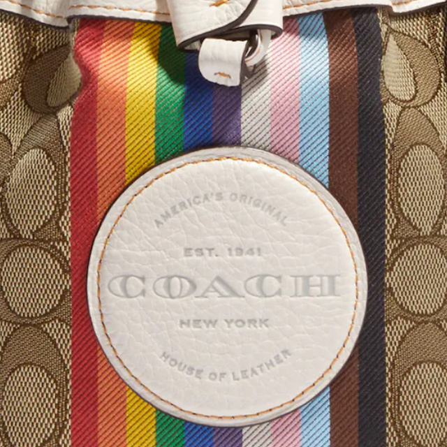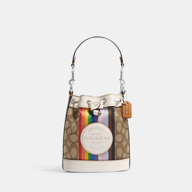 PRE-ORDER COACH Mini Dempsey Bucket Bag In Signature Jacquard With Rainbow Stripe And Coach Patch CJ661