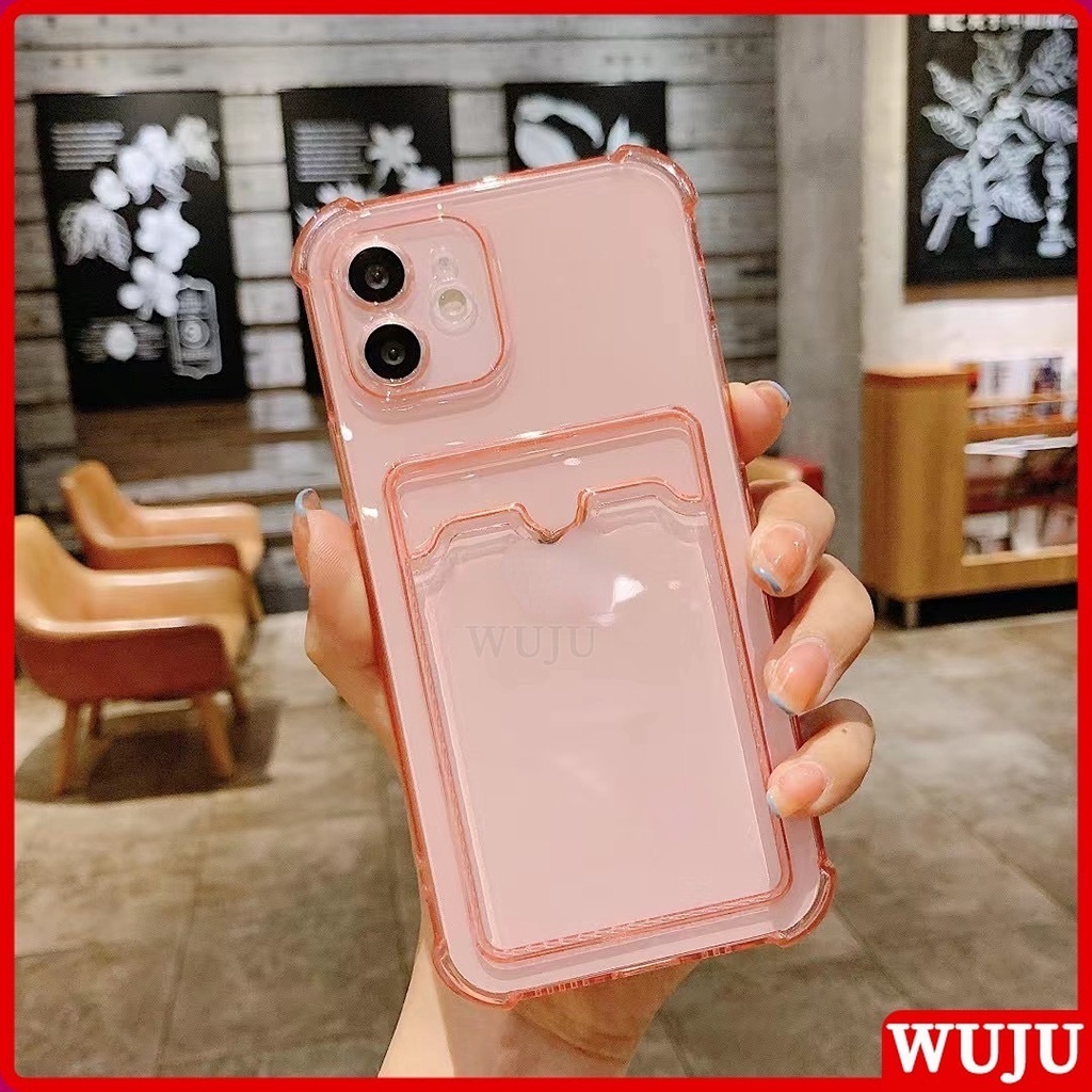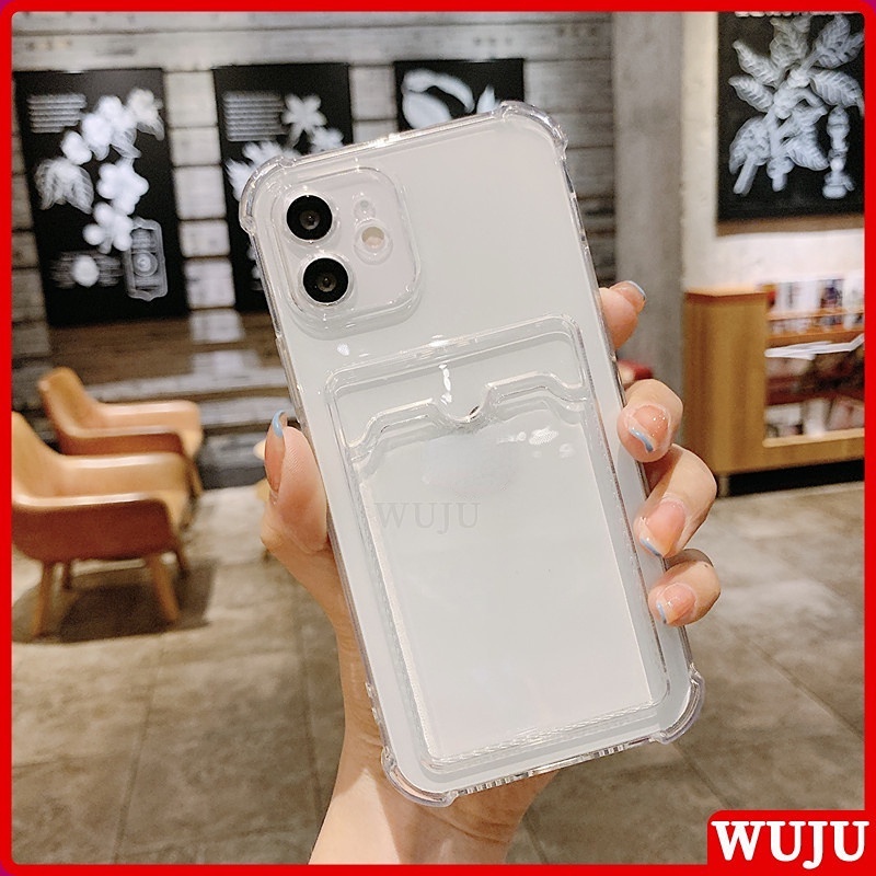 WUJU With Wallet Clip Card Holder Shockproof Clear Phone Case Compatible For iPhone 11 12 13 Pro Max X XS Max XR 7 8 Plus SE 2020 Soft Silicone Transparent TPU Cover Case
