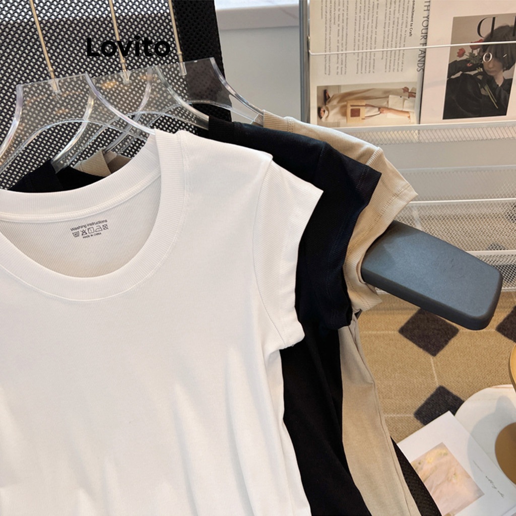 Lovito Casual Plain Basic T-Shirt for Women LNE37151 (Multi-color)