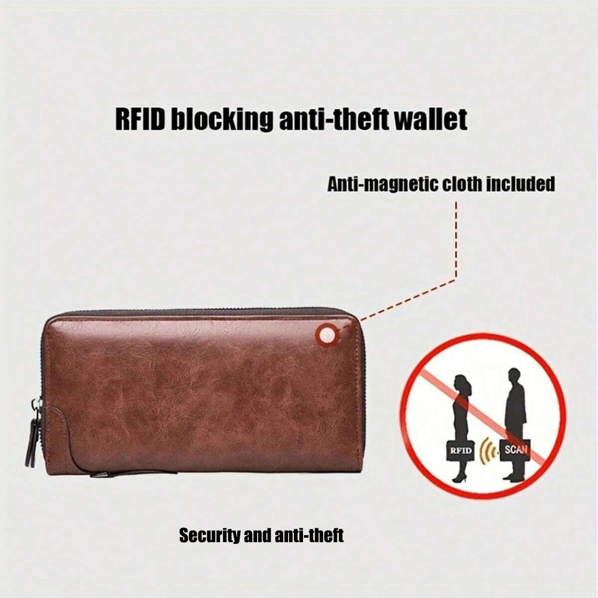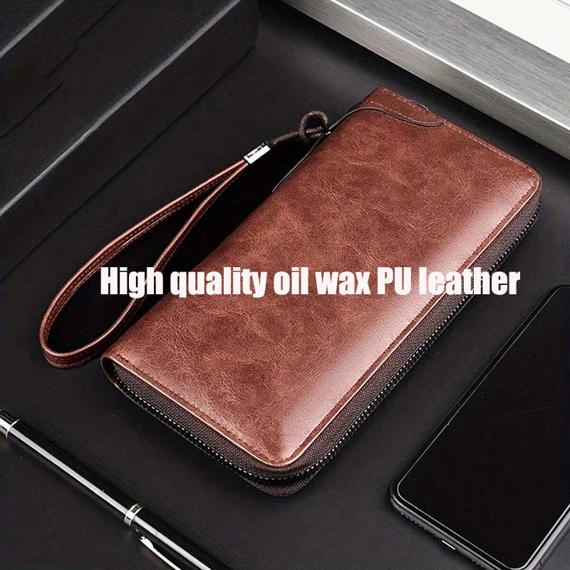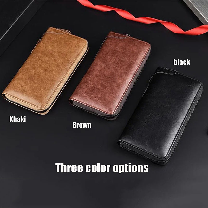 Men's Wallet High Quality Pu Leather Long Zipper Wallet for Men RFID Blocking Business Clutch Bag Credit Card Holder Purse Man