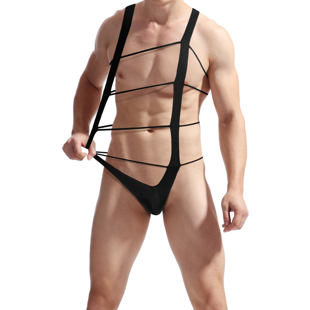 Pt484 Ready Stock European American Men Stretch Black Full Body Hollow Tight-Fitting Bondage Belt Muscle Male Sports Student Fitness Coach Stage Performance Showing Chest Muscle Body Sculpting Body Be