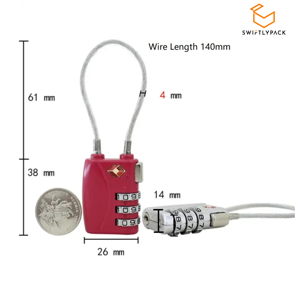 TSA Luggage Lock 3 Digit Combination Cable Padlock For Travel Suitcase Bags and Gym Lock