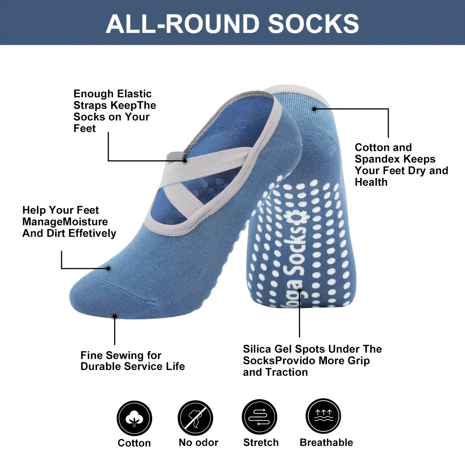 Suitability:good Quality:good Performance:good delivery took about a week! good for the price paid, tried the socks for a pilates session and it didn't slip once.